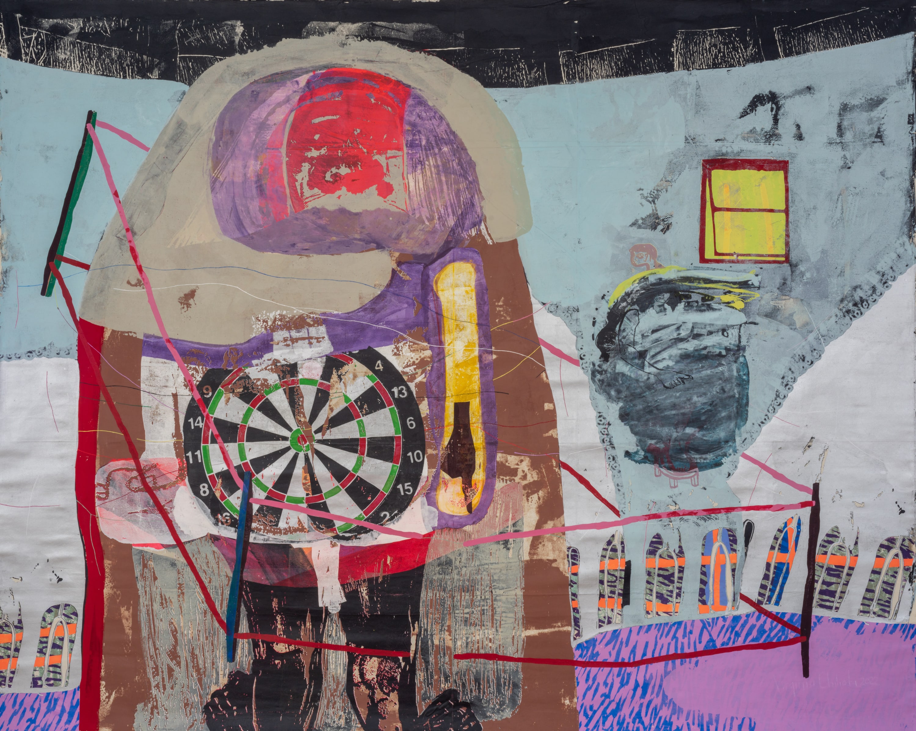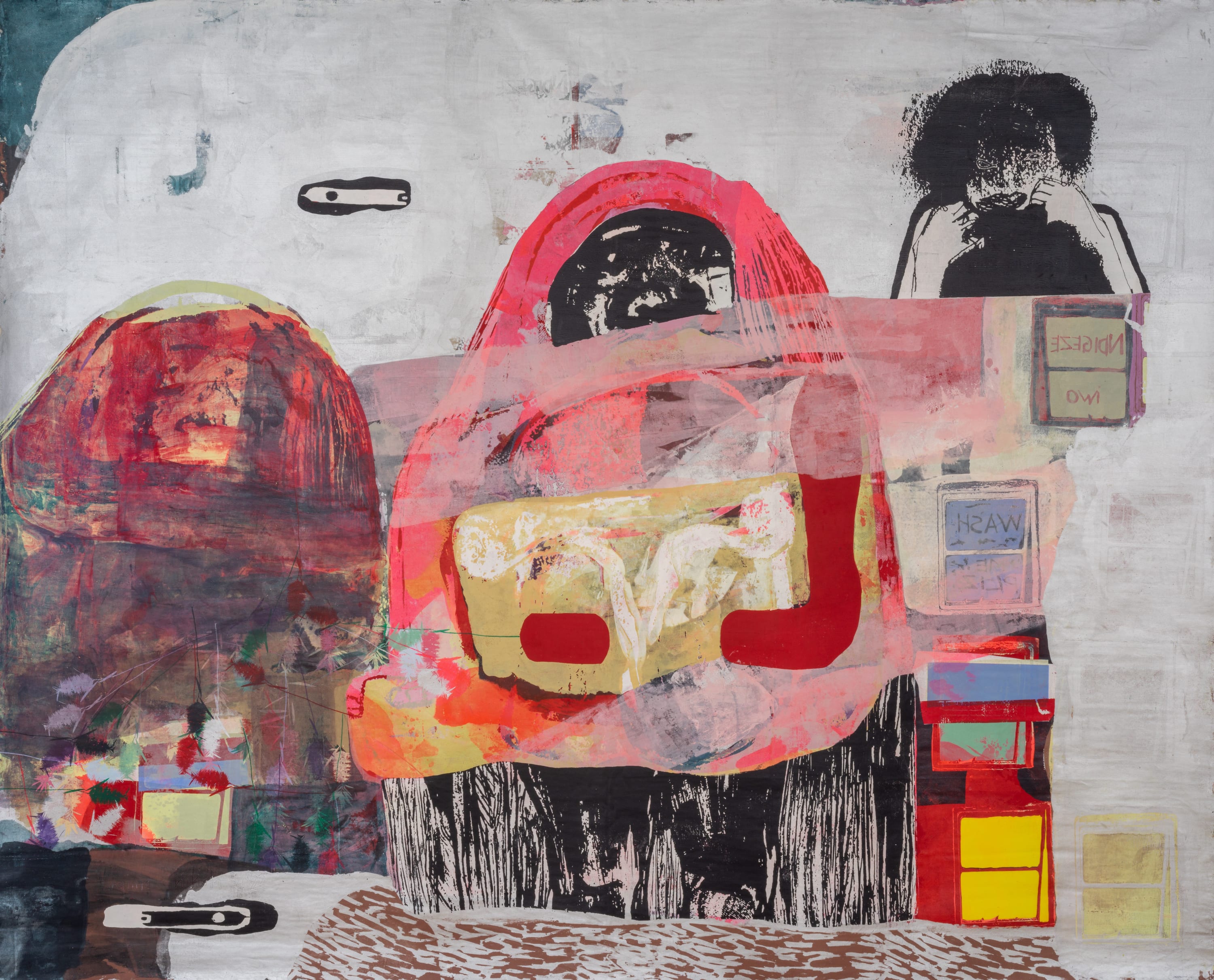 These unique mural-eque serigraphic works are a palimpsest of drawn, printed and densely layered compositions. Weaving together the realms of her subconscious and lived reality, the works express how one might find the spiritual energy to break damaging psychological cycles to create, instead, hopeful and generative ones to live and thrive by.